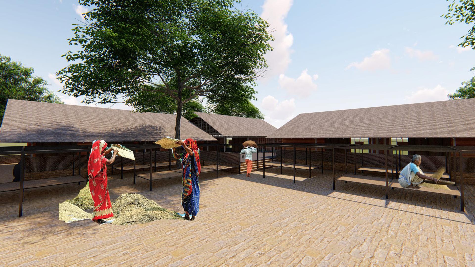 COMMUNITY COLLECTIVE AGRICULTURAL OUTLET QUILT MAKING Cloth collection for quilts Quilt storage Storage MARKET PRIMARY SECTOR SECONDARY SECTERTIARY SECTOR ATTRIBUTED AMENITIES Quilt stitching Quilt making workshop Finance, marketing etc. Gram Panchayat office Administration office Women & Child Empowerment office VOCATIONAL TRAINING PROJECT PROGRAM Manual threshing 100-150100 750 sq.m 750 sq.m Machine threshing270-300 20 120 sq.m (6 machines to be accomodated) 120 sq.m Pre-cleaning Rice dehusking Paddy separation Whitening Rice grading Weighing & Bagging Raw rice bags storage (2 Public Semipublic Private Open Semiopen Closed No. Of Users accomodated 15 Rice straw/stalks separation Low cost paddy thresher 1660 1580 1650 mm (15 sq.m) Grain output 444 kg /hr (3.5T/D) works for hours Rice husk, bran, broken rice grains Details Description Area requirement of one 40-50T/D integrated rice milling equipment (8580 1900 4230mm) (80 sq.m) = 80 sq.m Reuse Recycle Blend of rice husk, bagasse and waste paper produce cardboard suitable for packaging as corrugating medium, wrapping, and insulating board Can be incorporated into building materials like bricks and ceiling panels Waste By-products 150 sq.m Total Area Total No. Of Users No. of spacesArea of each space Rice straw/stalks AGRICULTURAL OUTLET Activities Program Rice mill plant Rice harvesting postproduction Threshing & cleaning unit 270-300 150 sq.m (1 machine to be accomodated)