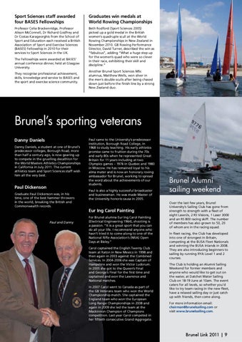 Brunel’s sporting veterans Danny Daniels Danny Daniels, a student at one of Brunel’s predecessor colleges, Borough Road, more than half a century ago, is now gearing up to compete in the gruelling decathlon for the World Masters Athletics Championships in California in July 2011. The current athletics team and Sport Sciences staff wish him all the very best.
