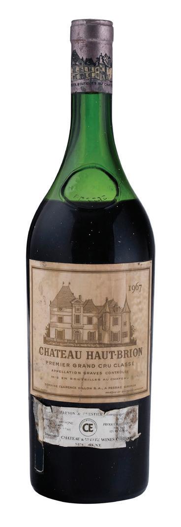 Vintage 1967, Pessac-Leognan, France, Red Bordeaux, 1,500 ml, alcohol 12% by volume, ullage to mid shoulder, some tears, nicks, and corrosion to capsule, labels with bin soilage, stains, and some tears (importer label)