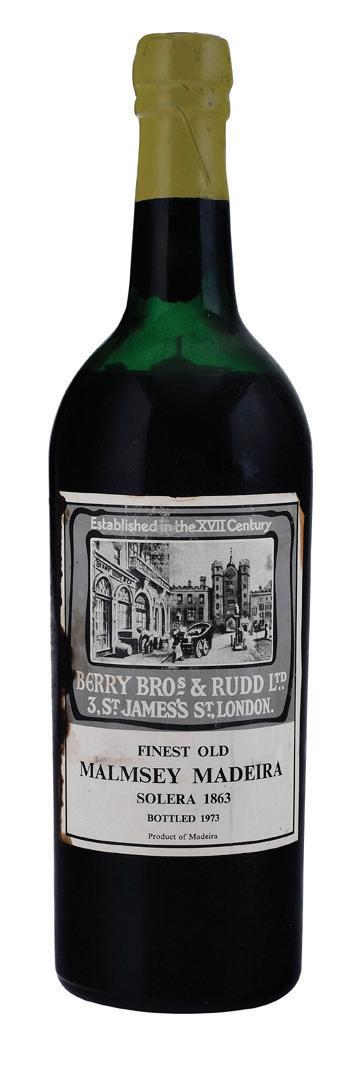 Berry Bros. & Rudd Malmsey Solero 1863 Vintage 1863, bottled 1973, Madeira, Portugal, Madeira, 750 ml, ullage to mid shoulder, capsule with some wrinkling and nicks, label with bin soilage and staining