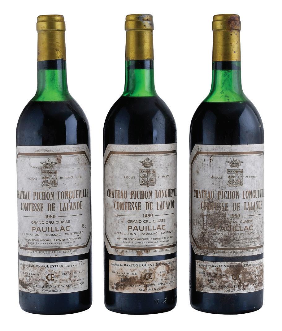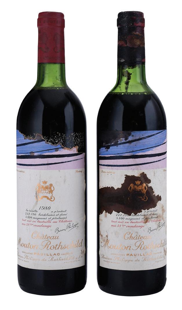 Vintage 1980, Sauternes, France, Sauternes, 750 ml, alcohol 11-14% by volume, ullage to base of necks, slightly depressed but firm corks, labels with bin soilage and stains, remnants of paper wrap