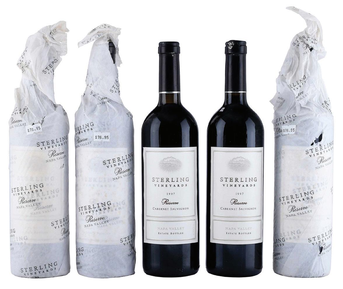 Five Bottles 1997 Sterling Vineyards Reserve Vintage 1997, Napa Valley, California, USA, Cabernet Sauvignon, 750 ml, alcohol 13.5% by volume, in original wood case, each with fill into necks, capsules and labels in overall good condition, in original paper wrapping