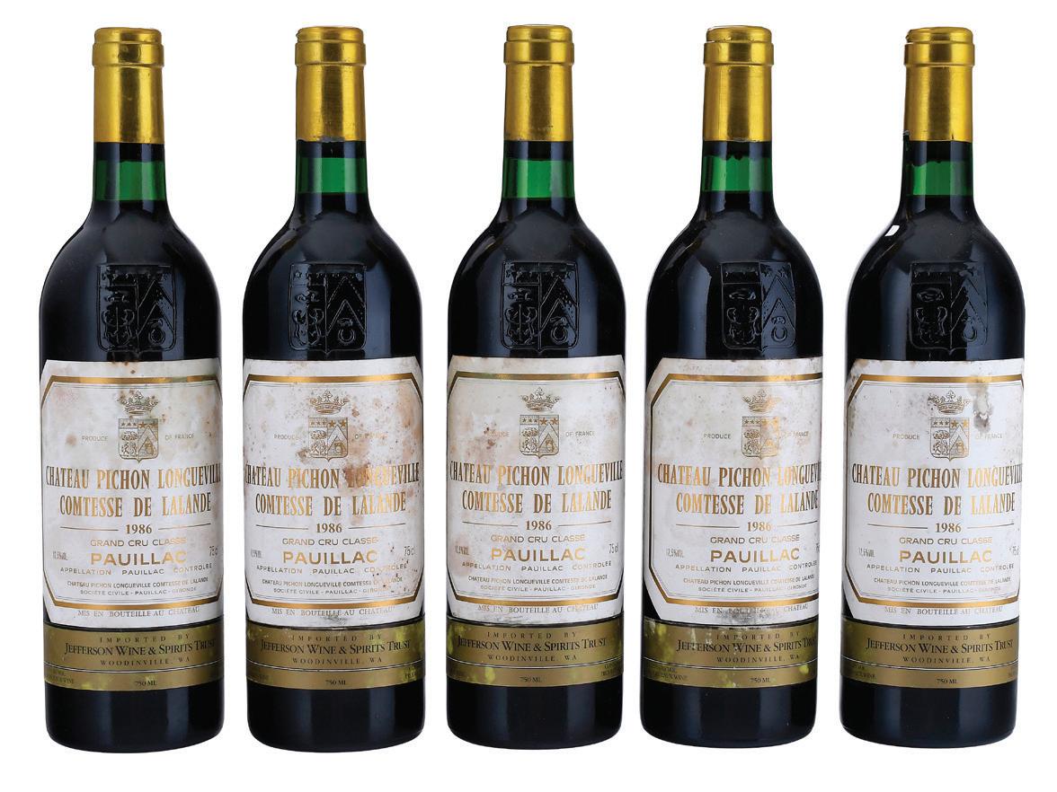 Vintage 1986, Saint-Julien, France, Red Bordeaux, 750 ml, alcohol 12.5% by volume, four with ullage to base of neck, one with ullage to top shoulder, some nicks to capsules, some nicks, wrinkling, and small tears to labels, some back labels with notable tears and losses
