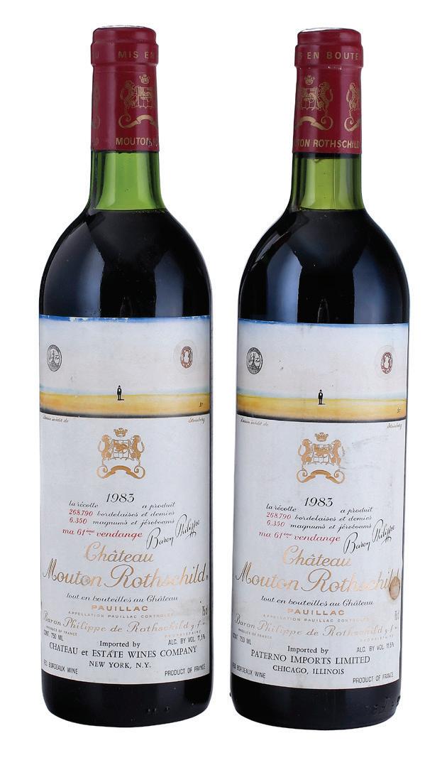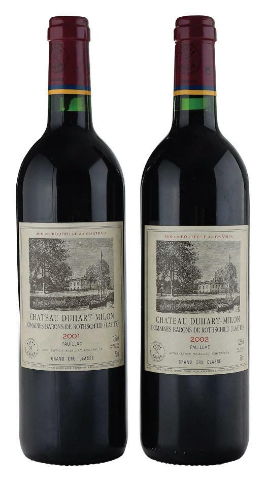 Vintage 2001, Pauillac, France, Red Bordeaux, 750 ml, alcohol 12.5% by volume; Vintage 2002, Pauillac, France, Red Bordeaux, 750 ml, alcohol 12.5% by volume, high fill into neck, labels with some slight nicking at edges