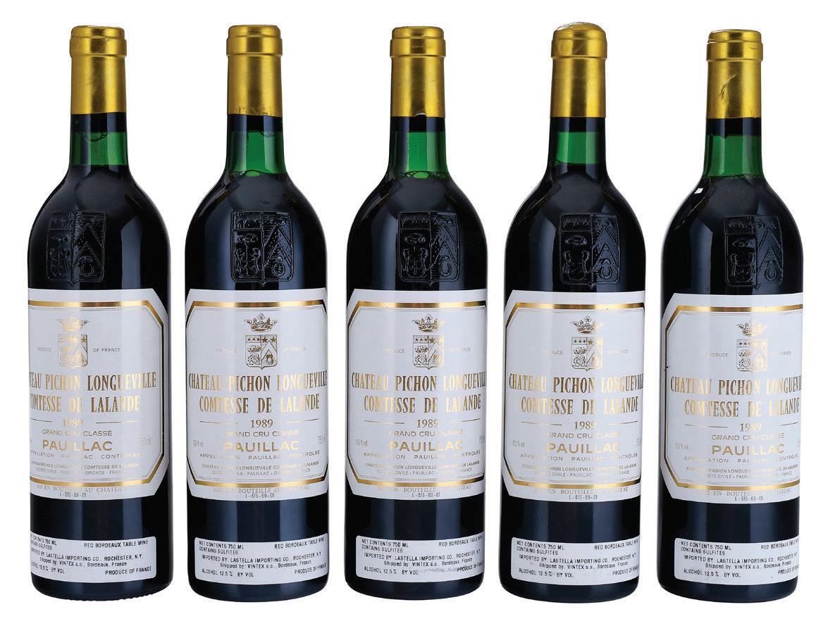 Vintage 1989, Pauillac, France, Red Bordeaux, 750 ml, alcohol 12.5% by volume, in original wood case, each with ullage to base of neck, capsules and labels in overall good condition with minor bin soilage