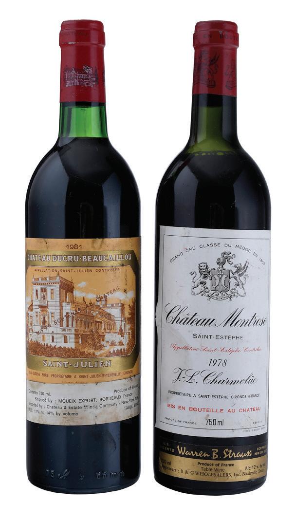 Vintage 1979, Saint-Julien, France, Red Bordeaux, 750 ml, alcohol 12.5% by volume, each with ullage to base of neck, one slightly depressed but firm cork, minor nicks and wrinkling to capsules, some staining, wrinkling, lifting, and nicks to labels, back labels with tears and losses