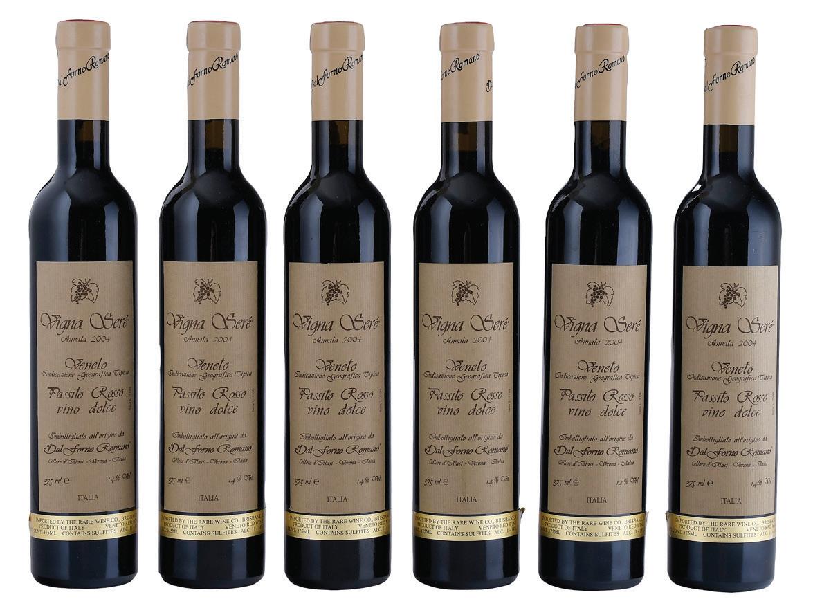 Six Half-Bottles 2004 Dal Forno Passito Rosso Vigne Sere Vintage 2004, Veneto, Italy, red dessert wine, 375 ml, alcohol 14% by volume, each with fill into neck, capsules and labels in overall good condition with some minor nicks, wrinkling, and lifting