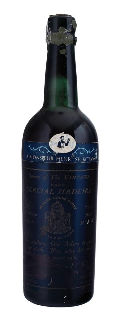 Vintage 1900, bottled 1960, Madeira, Portugal, Madeira, 739 ml, alcohol 20% by volume, ullage to base of neck, cracks and loss to wax capsule, labels with bin soilage, wear, and staining