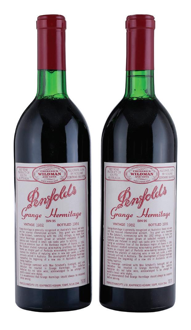 Vintage 1982, Australia, 750 ml, alcohol 13% by volume, each with ullage to base of neck, slightly depressed but firm corks, capsules and labels in overall good condition with minor nicks and wear