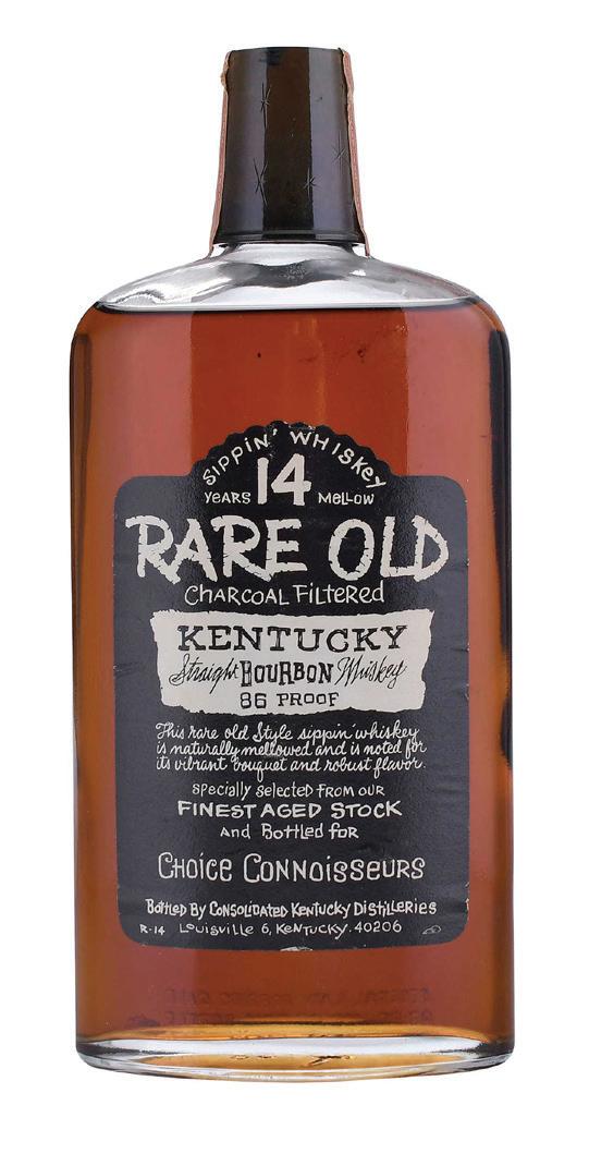 Rare Old 14 Years Mellow Sippin’ Bourbon Whiskey Louisville, Kentucky, Bourbon whiskey, 4/5 quart, alcohol 43% by volume, some small tears and wrinkling to labels
