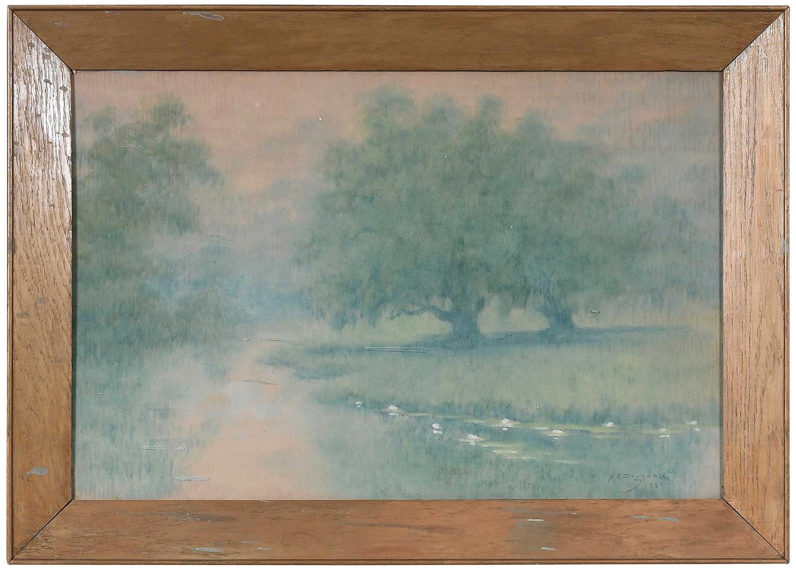 Morning Fog: Monhegan, no. 135, 1992, signed and dated lower left “ ‘92 Lamar Dodd”, watercolor on paper, sight 12-3/4 x 18 in.; modern gilt wood frame, 21-1/4 x 26-1/4 x 1 in., not examined out of sealed frame, overall good condition; frame with light wear