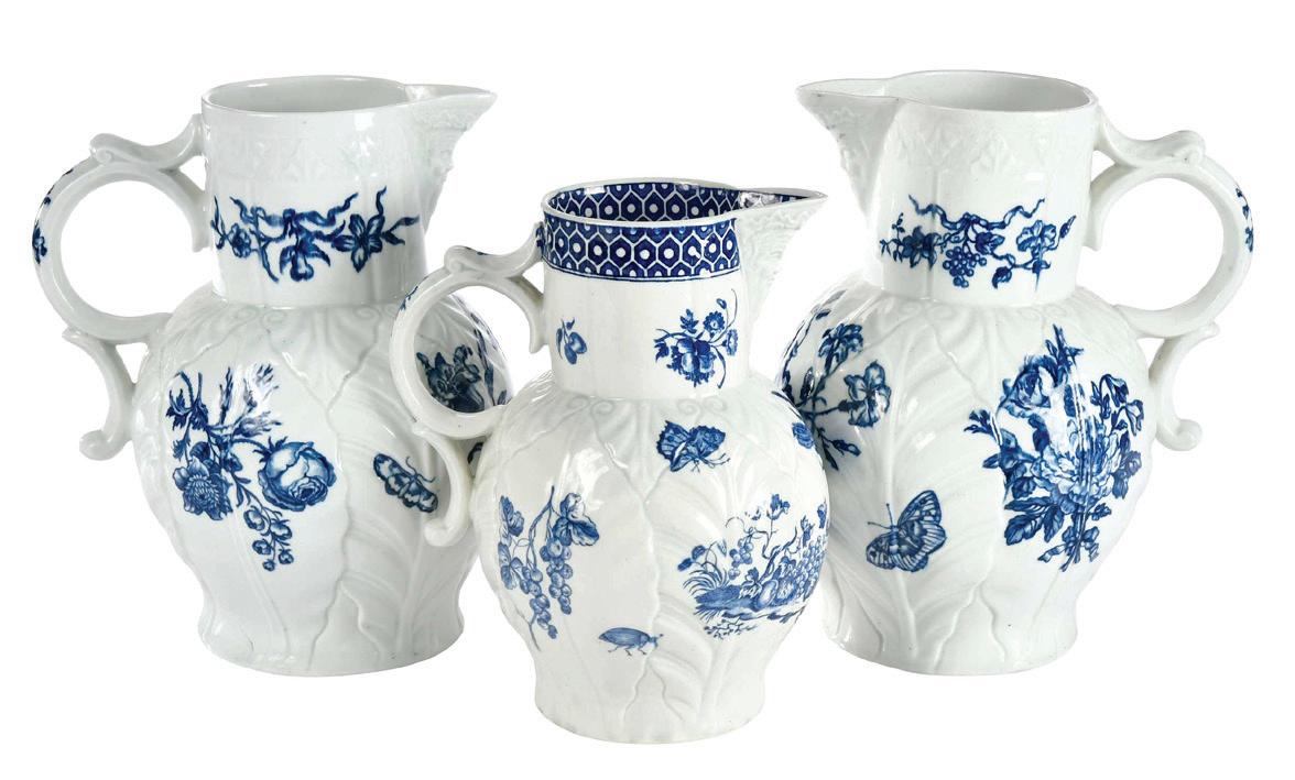 Three Small Cobalt Decorated Saltglazed Stoneware Pitchers