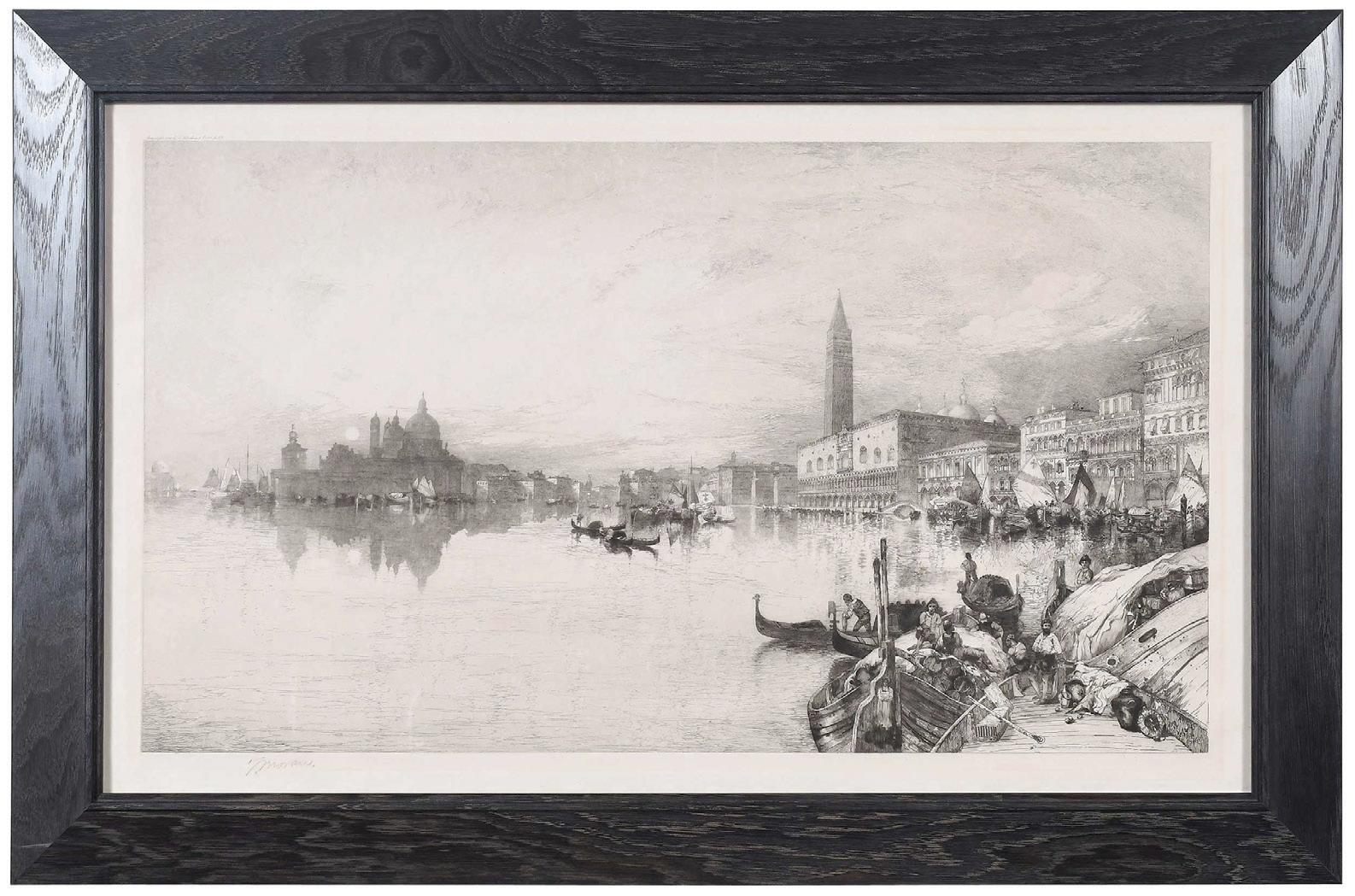 A similar example is pictured in Treasures of Chinese Export Ceramics from the Peabody Essex Museum by William R. Sargent, 2012, page 144. “A view of the city of Guangzhou (Canton) and, in the far distance, the White Cloud Mountains (Baiyunshan) decorate these examples from a possibly unique dinner service, which also includes two plates in the PEM collection. Beyond the crenelated wall surrounding the city at the Pearl River’s edge can be seen the three landmarks that would have been familiar to all traders and remain there today: from left to right, the Flowery Pagoda, the tenth-century Mohammedan or Plain Tower (Guangta), and the Watchtower, or Pavilion Overlooking the Sea (Zhenhai Lou). Small boats on the river are shown in front of a few buildings on stilts that remain outside the city walls, and just left of center one of these buildings displays the Chinese characters that translate as acme or zenith... Other related works: Christie’s South Kensington, May 11, 2000, (lot 292)... tureen, S. Marchant and Sons, London, July 1993...”