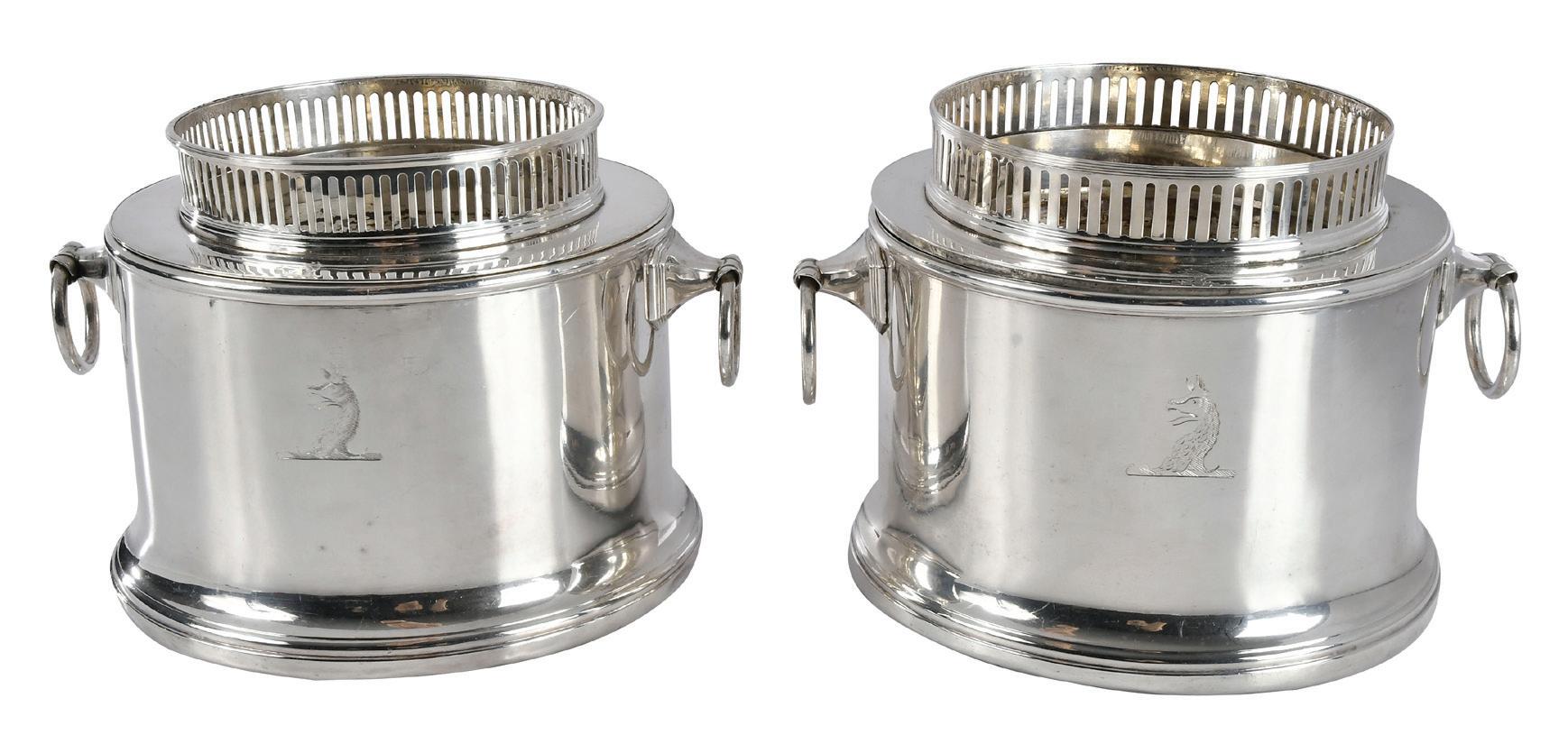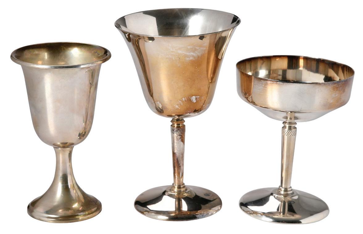 American, late 20th century, reeded rim and base, no monograms, marks for Fisher, “86”, 18.64 oz. T., 3-3/4 x 3-1/4 in., small dents, light scratches, and wear