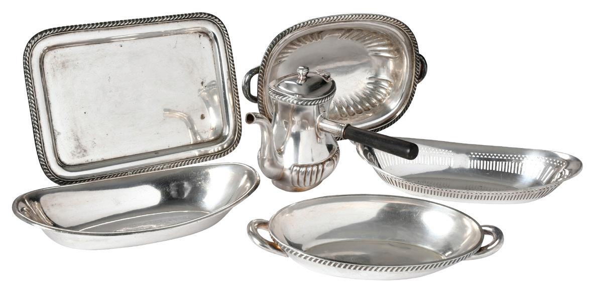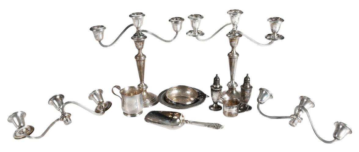 23 Sterling Table Items American, 20th century, including Bailey, Banks & Biddle bowl; nine bread & butter plates; Theodore Starr rectangular openwork dish; shell dish; oval dish; Tane Mexican sterling butter pat; nine pieces flatware (butter, spreaders, bon bon, spoons), 50.99 oz. T., 3-1/4 in. to 9 in., some with dents, all with wear