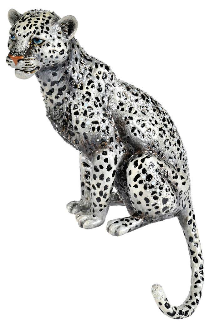 Jay Strongwater Enamel and Rhinestone Decorated Seated Snow Leopard Sculpture, (American b. 1960)