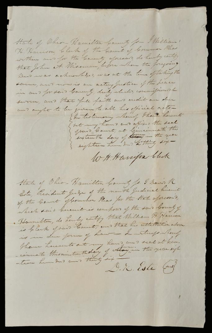 William Henry Harrison Handwritten Statement as Court Clerk for Hamilton County, Ohio, dated 1836, signed “W.H. Harrison”, along with signature of David K. Este, 12-1/2 x 16 in., discoloration, folds, edge wear, minor scattered losses