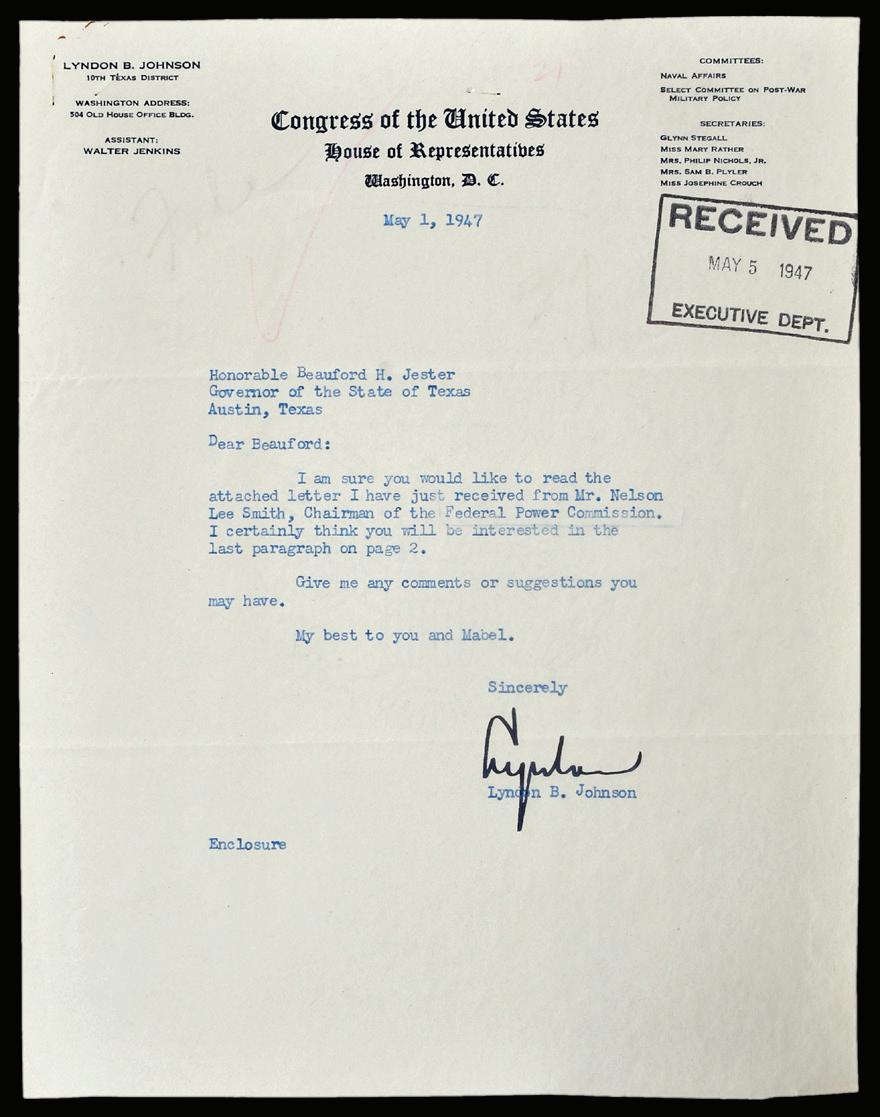 Lyndon Johnson Congressional Typed Letter Signed on official Congress letterhead, to Governor Beauford Jester at Austin, Texas, 1947, signed “Lyndon”, 10-1/2 x 8 in., toning, pinholes, official stamping and stray markings