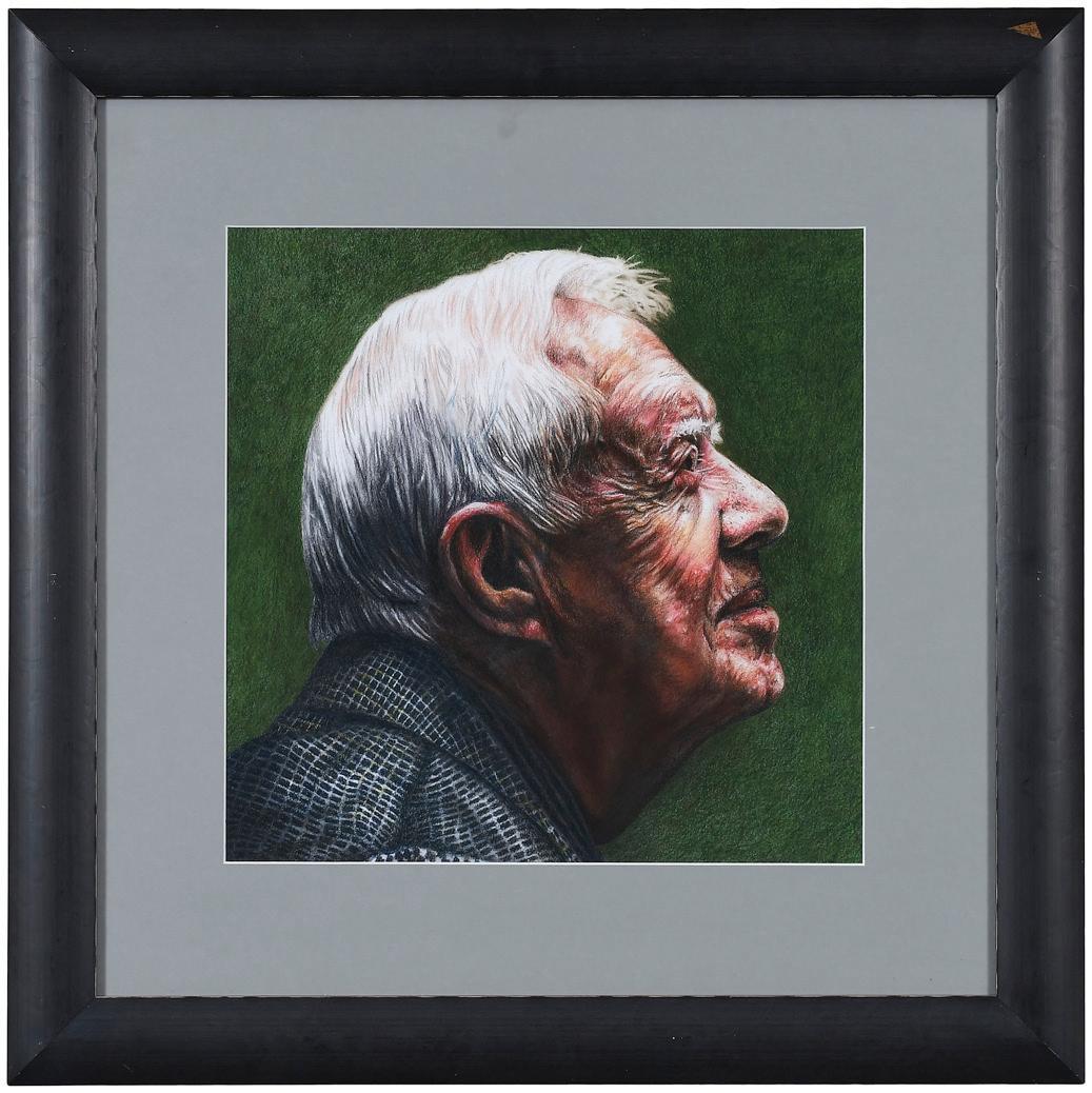 Portrait of President Jimmy Carter, 2016, signed and dated lower right, Chinese characters and chop mark in red ink (Yuan Ching), marker and watercolor on paper, 20 x 16 in.; gilt wood frame, 28 x 24 in., paper is clean and bright, strong color; frame with minor wear