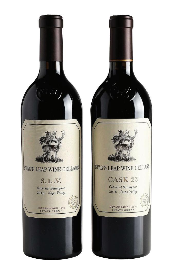 Two Bottles of 2018 Stag’s Leap one bottle S.L.V., Napa Valley, Cabernet Sauvignon, 750 ml, alcohol 14.5% by volume; one bottle Cask 23, Napa Valley, Cabernet Sauvignon, 750 ml, alcohol 14.5% by volume, each with good fill into neck, one with slightly depressed but firm cork, capsules and labels in overall good condition with minor wrinkling