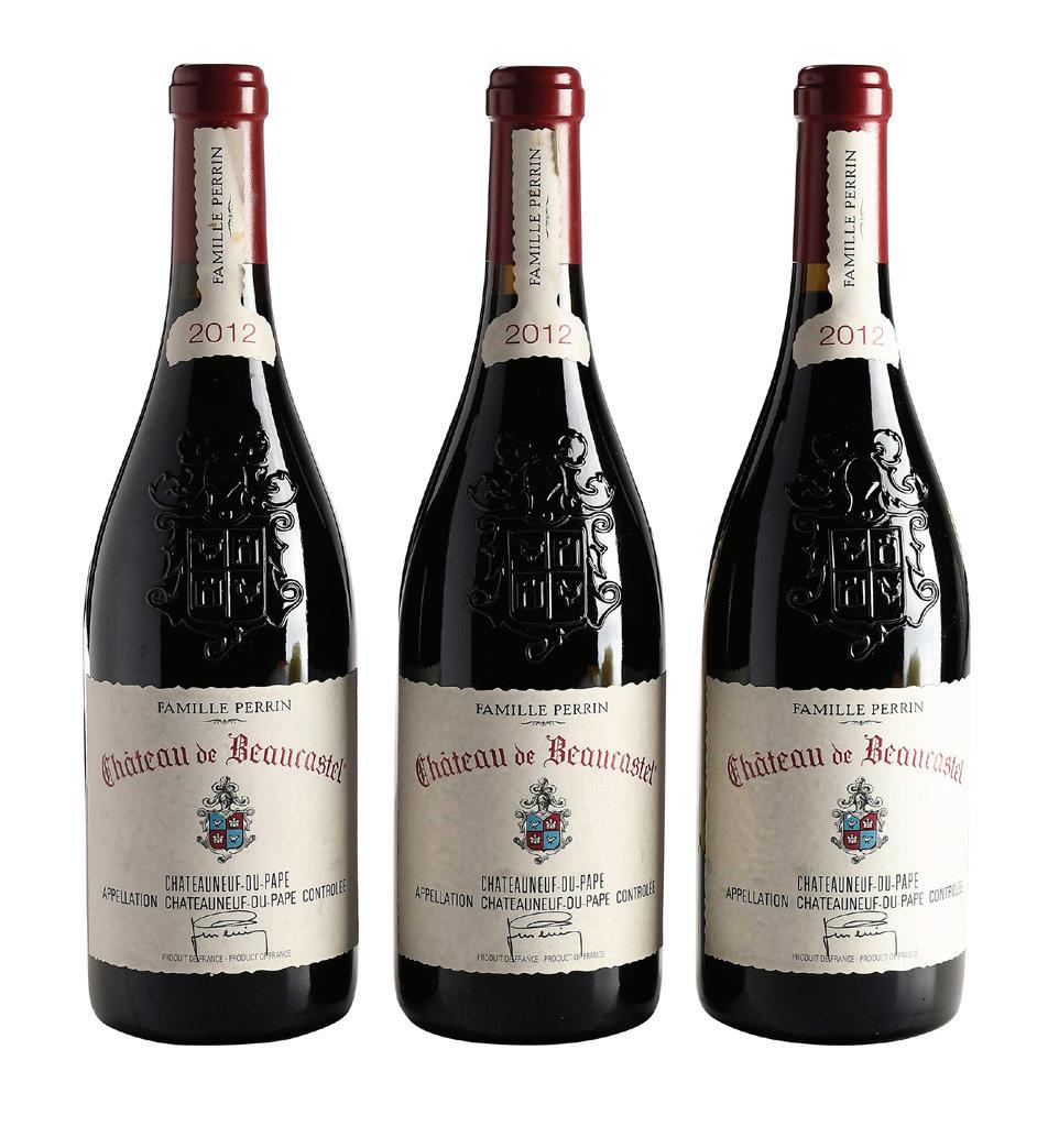 Vintage 2012, Rhone, France, Chateauneuf-du-Pape, 750 ml, alcohol 14.5% by volume, each with fill into neck, slightly depressed but firm corks, capsules and labels in overall good condition, slight lifting to neck labels