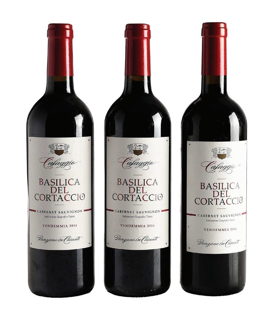three bottles vintage 2016, Tuscany, Italy, 750 ml, alcohol 14% by volume, high fill into necks, capsules with slight wrinkling, labels in overall good condition with some minor nicks at edges and corners