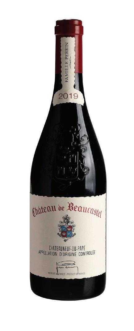 Vintage 2019, Rhone, France, Chateauneuf-du-Pape, 750 ml, alcohol 14.5% by volume, high fill into neck, slightly depressed but firm cork, capsules and labels in overall good condition with some wrinkling to back label