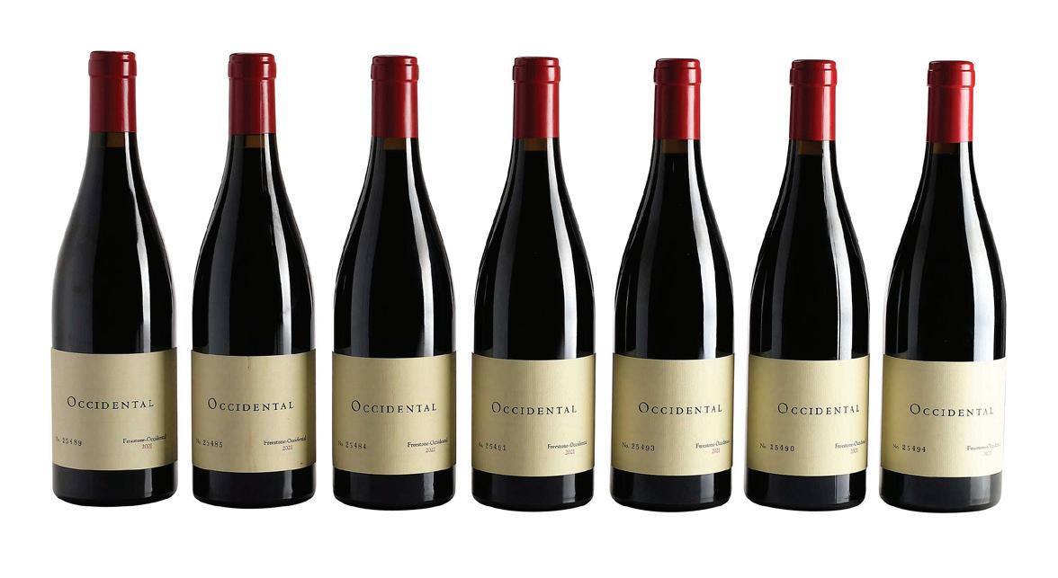 Seven Bottles of 2021 Occidental-Kistler Vineyards Freestone-Occidental Vintage 2021, Sonoma Coast, Pinot Noir, 750 ml, alcohol 13.3% by volume, each with fill into neck, minorly depressed but firm cork, capsules and labels in overall good condition