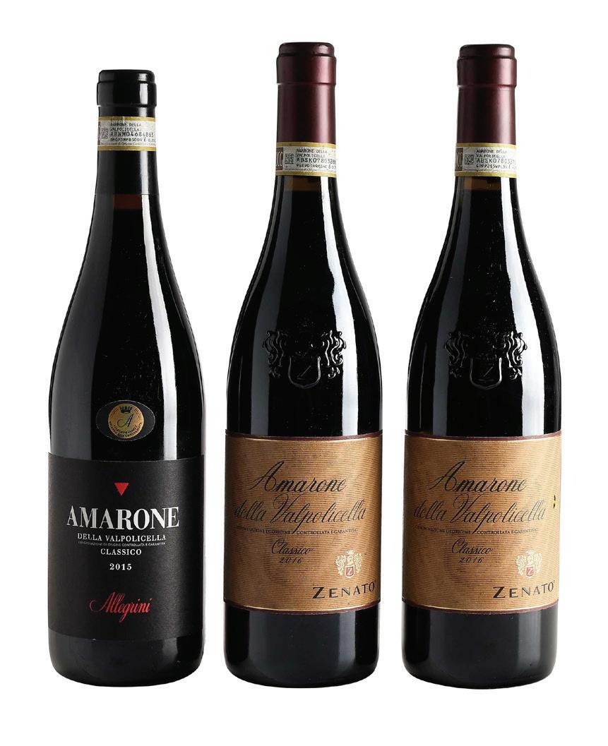 two bottles vintage 2016 Zanneto Amarone della Valpolicella Classico, Veneto, Italy, 750 ml, alcohol 16.5% by volume; one bottle vintage 2015 Allegrini Amarone Della Valpolicella Classico, Veneto, Italy, 750 ml, alcohol 15.5% by volume, each with high fill into neck, slightly depressed but firm corks, capsules and labels in overall good condition, one label with hole to right side