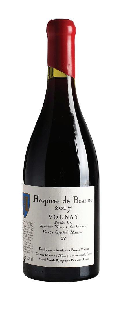 2017 Hospices de Beaune Volnay Premier Cru Cuvee General Muteau Vintage 2017, Cote de Beaune, France, Pinot Noir, alcohol 13.5% by volume, high fill into neck, wax capsule in overall good condition, small tear to bottom left corner of label
