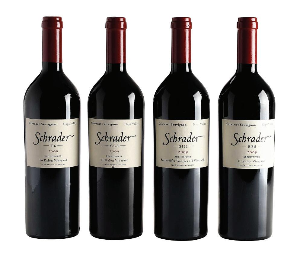 two bottles proprietary red, vintage 2009, Napa Valley, 750 ml, alcohol 15.1% by volume; one bottle Cabernet Sauvignon, vintage 2009, Napa Valley, 750 ml, alcohol 15.2% by volume; two bottles Cabernet Sauvignon, vintage 2010, Napa Valley, 750 ml, alcohol 15.2% by volume; one bottle proprietary red, vintage 2014, Napa Valley, 750 ml, alcohol 14.8% by volume, high fill into necks, capsules and labels in overall good condition