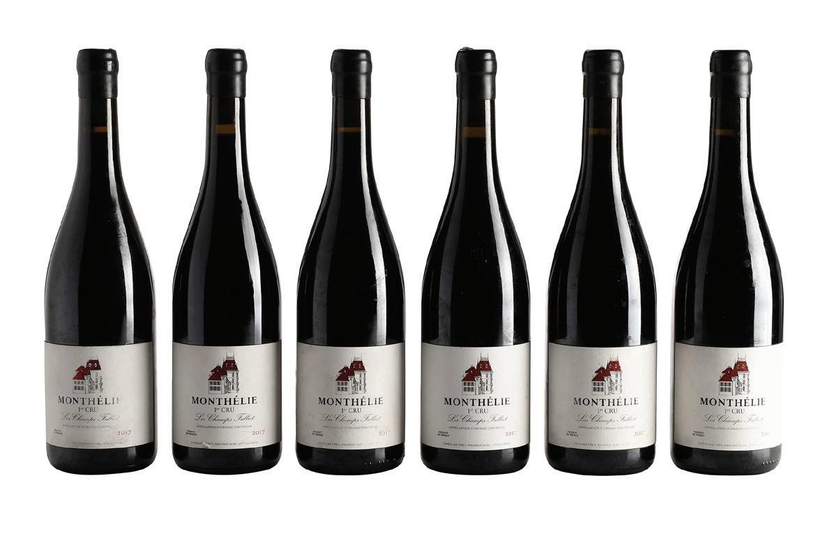 Six Bottles of 2017 Caroline Frey Les Champs Fulliot vintage 2017, Monthelie, France, Pinot Noir, 750 ml, alcohol 13% by volume, each with good fill into neck, wax capsules in overall good condition, some abrasions to labels