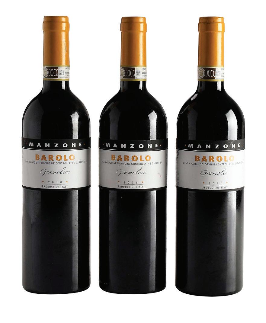 Three Bottles of 2018 Giovanni Manzone Le Gramolere vintage 2018, Barolo, Italy, 750 ml, alcohol 14.5% by volume, each with fill into neck, capsules and label in overall good condition with some minor wear