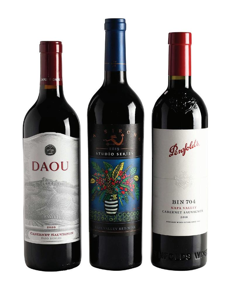 three bottles vintage 2021, Napa Valley, Cabernet Sauvignon, 750 ml, alcohol 15.6% by volume, high fill into necks, one slightly depressed but firm cork, capsules and labels in overall good condition