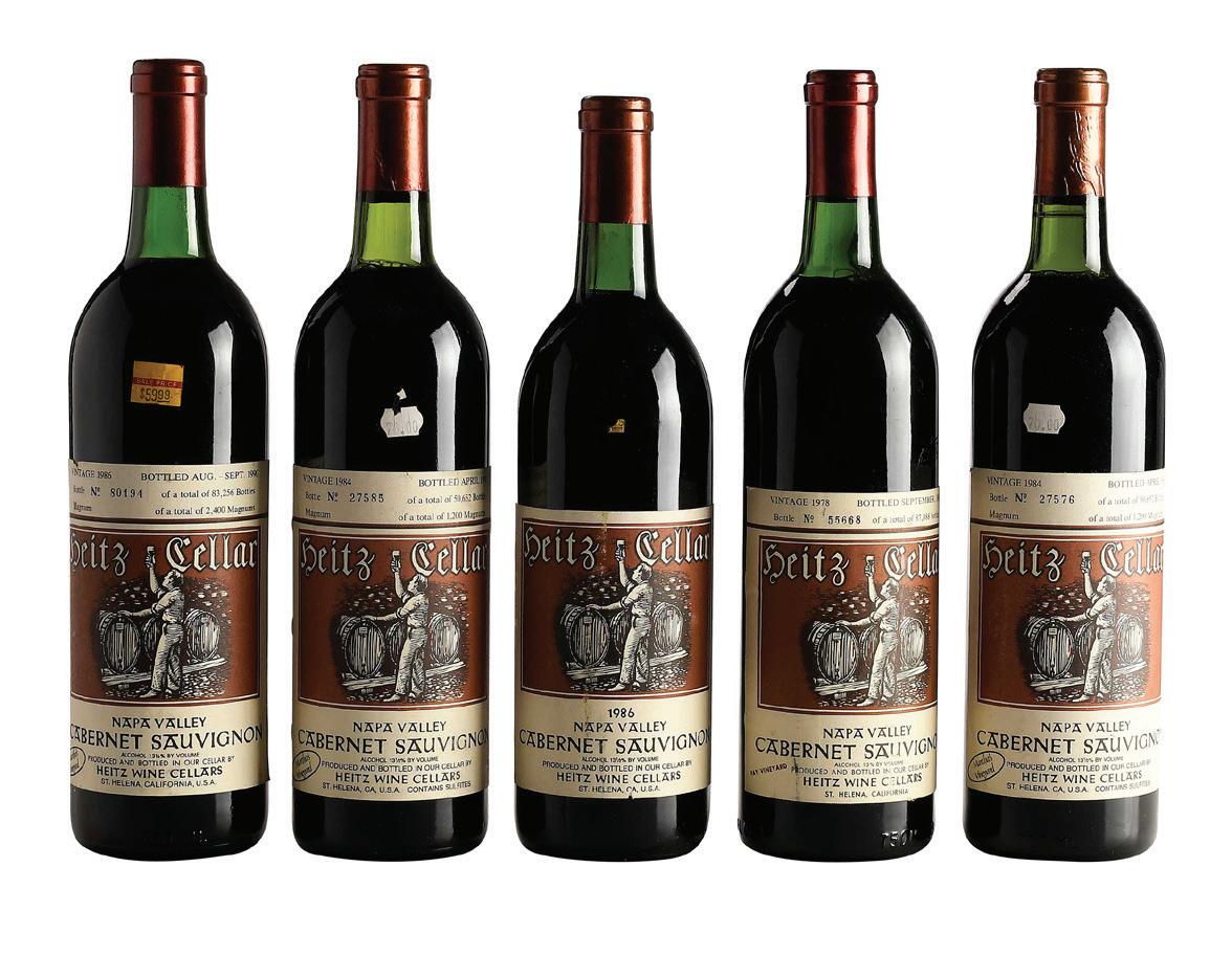 Five Bottles of 1978-1986 Heitz Cellar Napa Valley