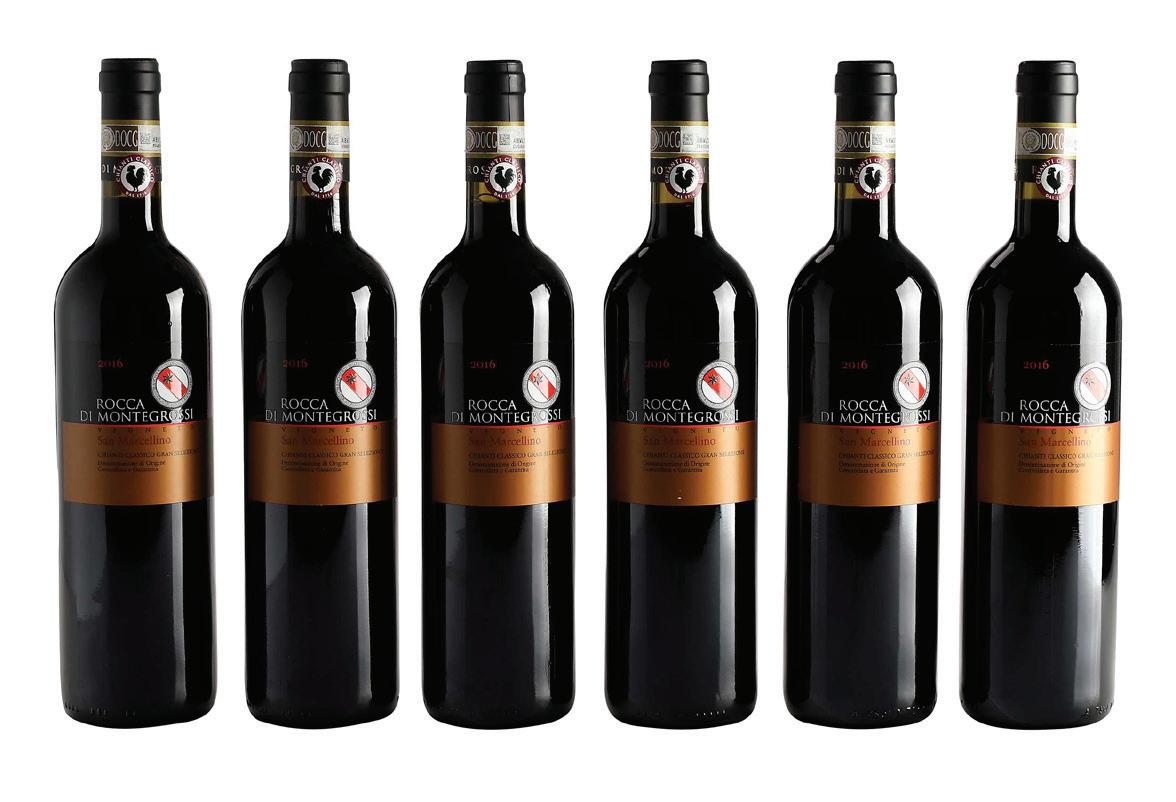 Six Bottles of 2016 Rocca di Montegrossi Vigneto San Marcellino Gran Selezione, six bottles vintage 2019, Tuscany, Italy, Chianti Classico, 750 ml, alcohol 14.5% by volume, each with high fill into neck, capsules and labels in overall good condition with minor nicks and wear