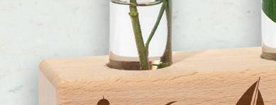 Vasenständer maritim Holzträger (13 x 3 x 4 cm) mit 3 Glaseinsätzen in Form von kleinen Reagenzgläsern, Höhe Glas ca. 8 cm
