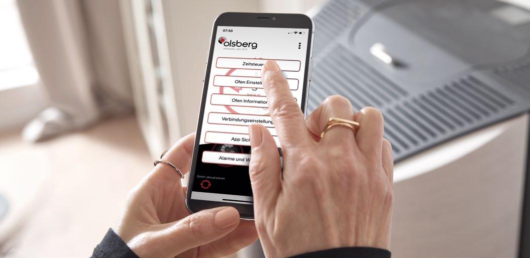 Die modernen Kaminofensteuerungen von Olsberg schaffen ein herrliches Wohlfühlklima, perfekt auf Ihren persönlichen Bedarf abgestimmt. Der Heizund Verbrennungsprozess wird umweltgerecht automatisch gesteuert und sorgt für optimale Brennstoffausnutzung und einen hohen Wirkungsgrad. Am Ende der Abbrandphase wird die Luftzufuhr so geregelt, dass Ihre Räume nicht auskühlen. Ihren Pelletkaminofen können Sie auf Wunsch sogar ganz bequem vom Sofa oder von unterwegs aus mit Ihrem Smartphone oder Tablet starten und steuern.