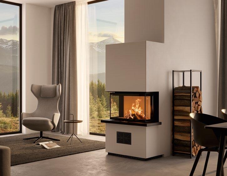 Dank der vorgefertigten Verkleidung einfach wandbündig aufbauen und integriert sich mit individuell ergänzbaren Sitzbankelementen, passenden Regallösungen oder offenen Holzlagerflächen perfekt in Ihre Raumsituation. Das prasselnde Feuer können Sie aus mehreren