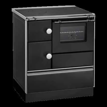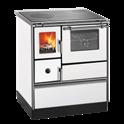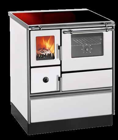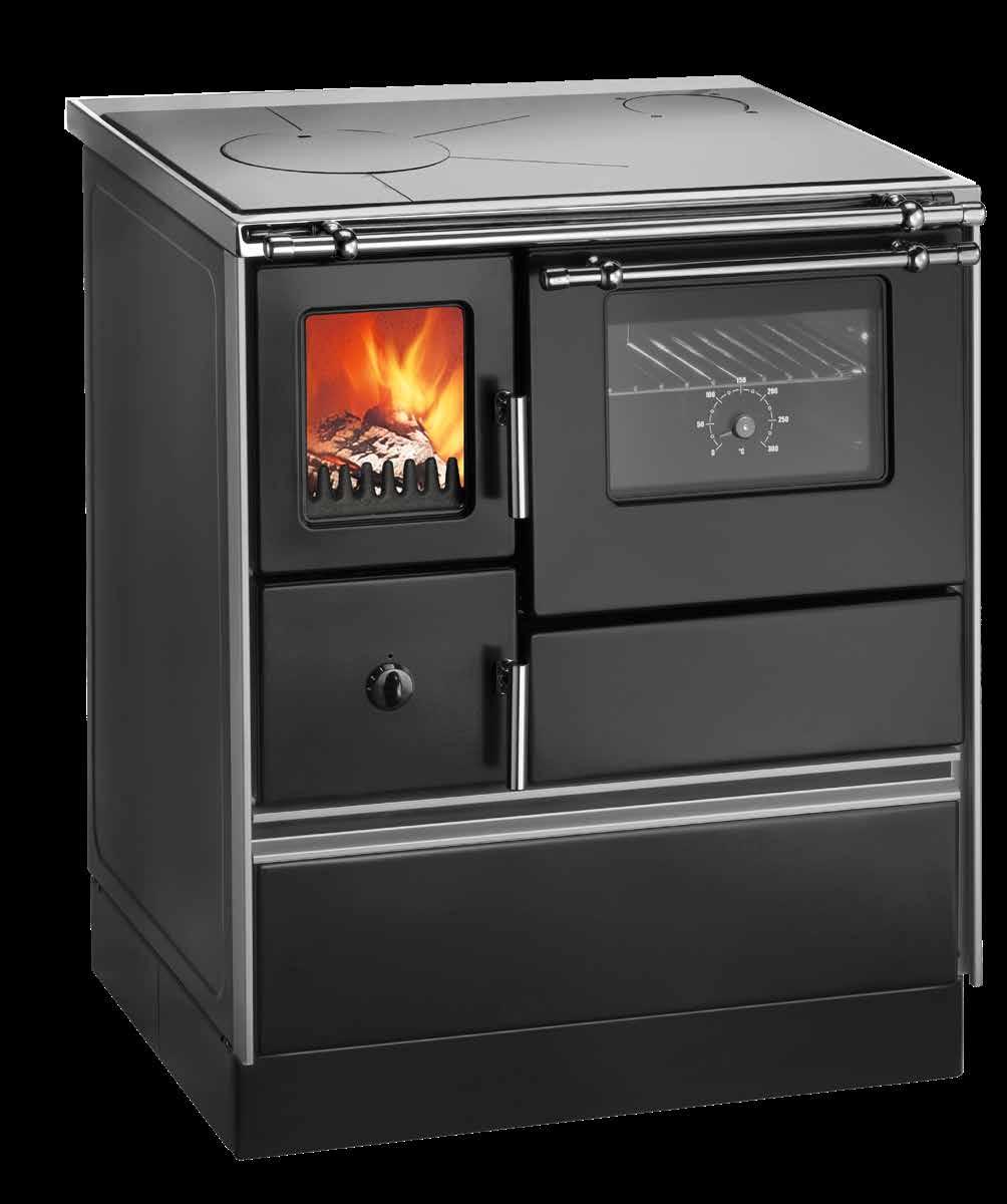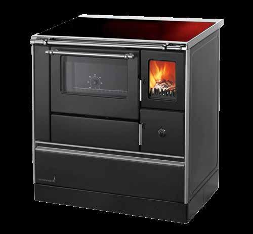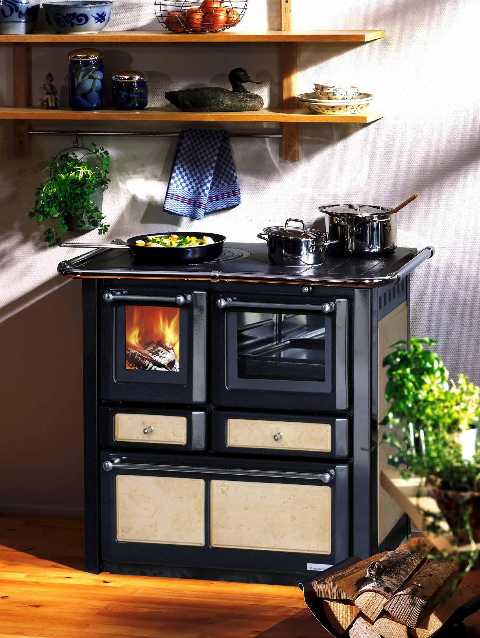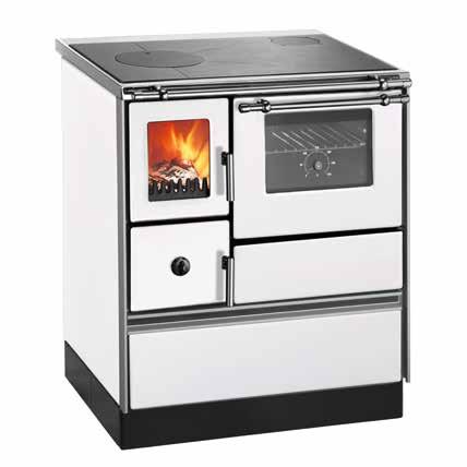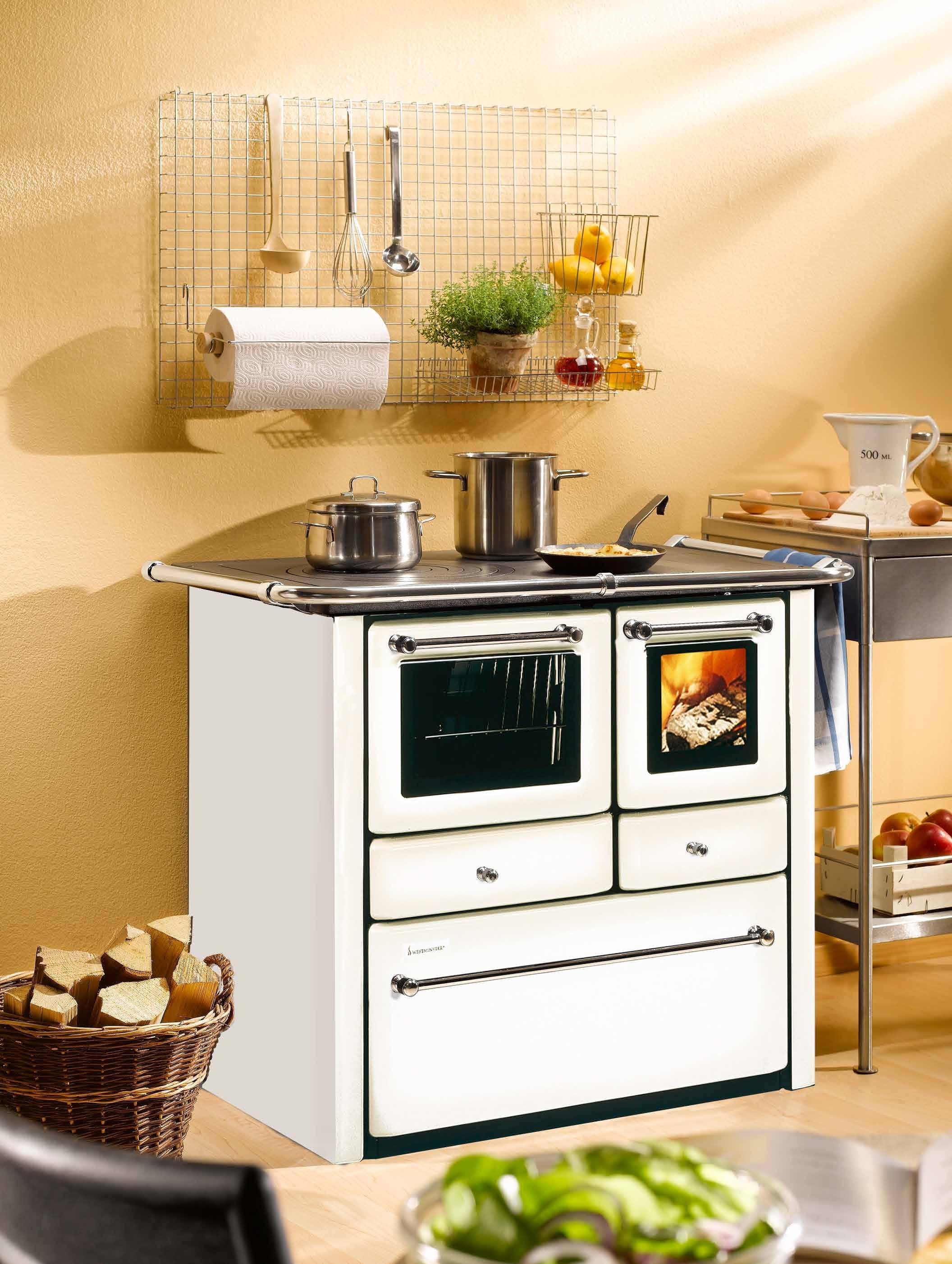 Lieferbar ist der Holzherd mit 70 oder 90 cm Breite in zahlreichen Farben. Mit und ohne Sichtfenster steht hier das Kochen im Zentrum: Mit lackierter Stahlplatte und Bratrohr mit Temperaturanzeige.