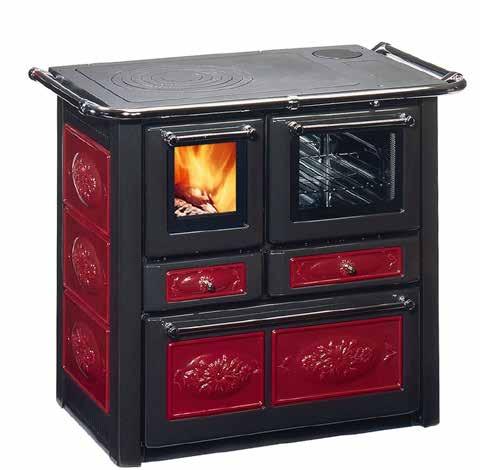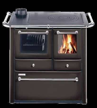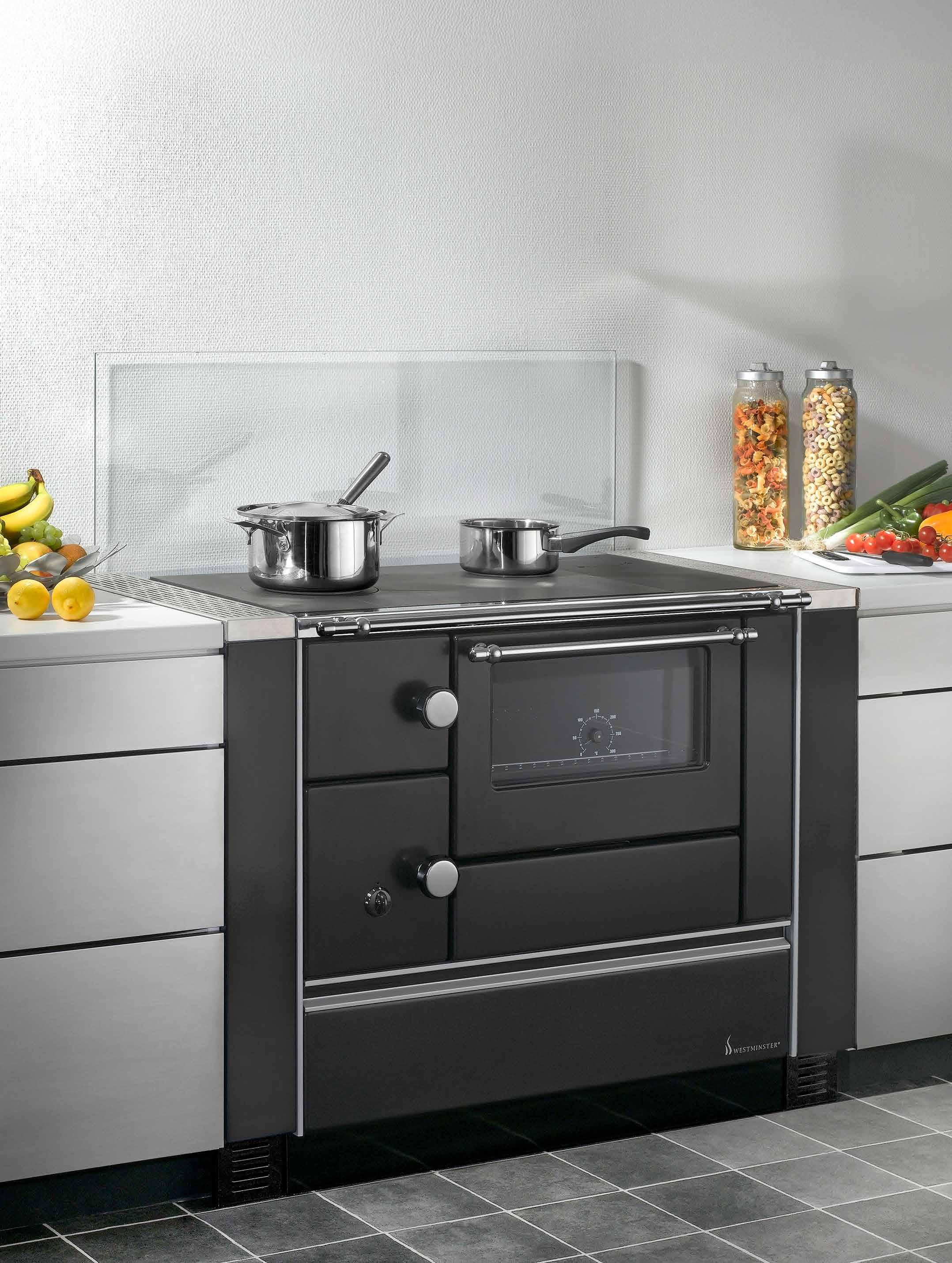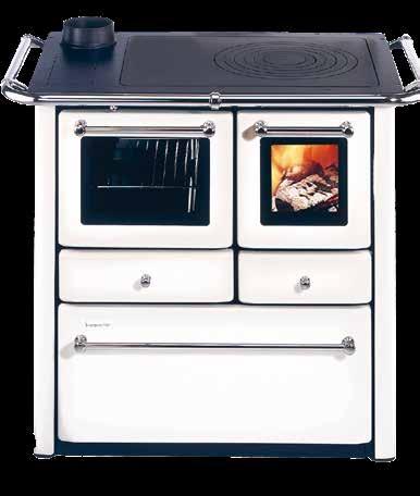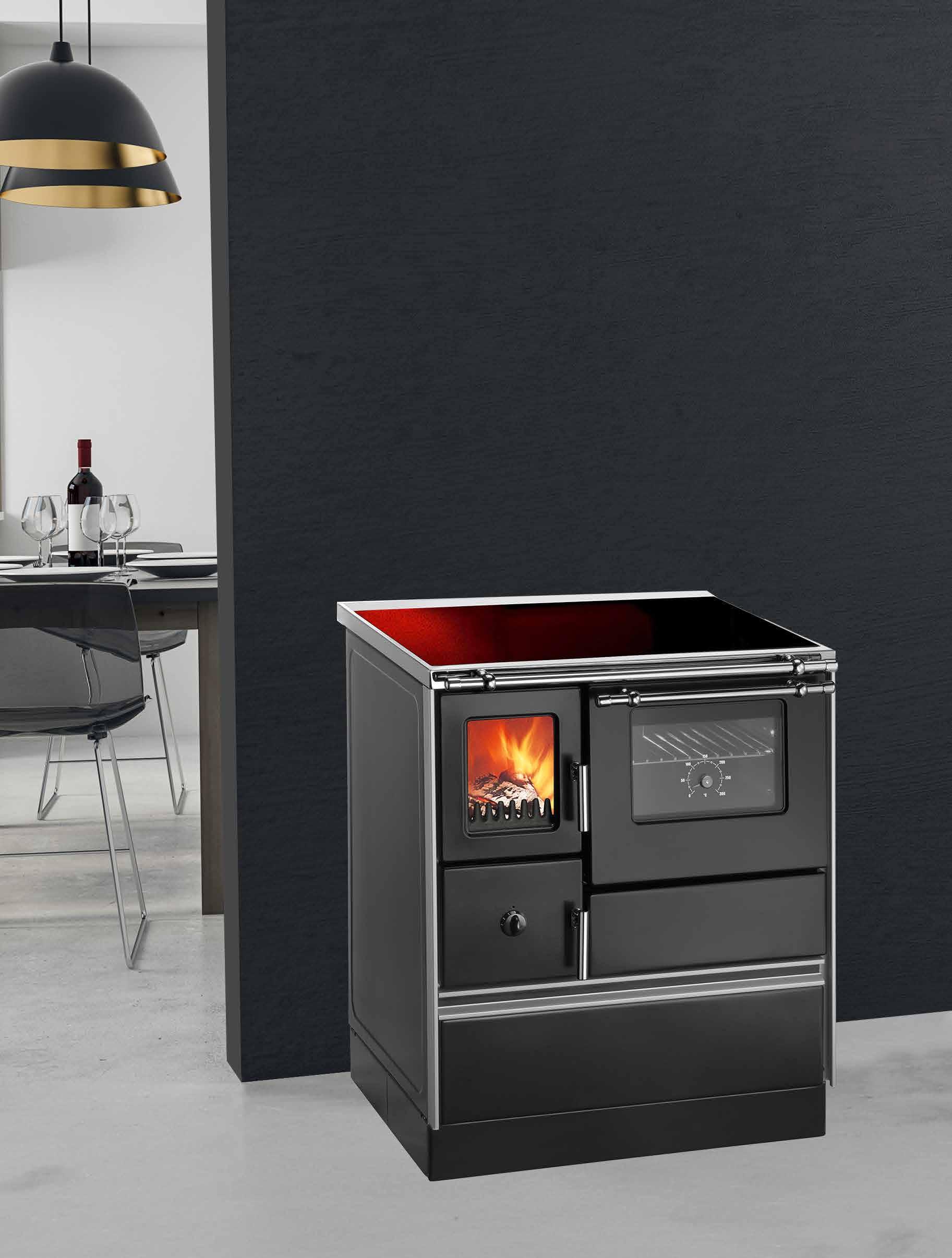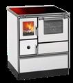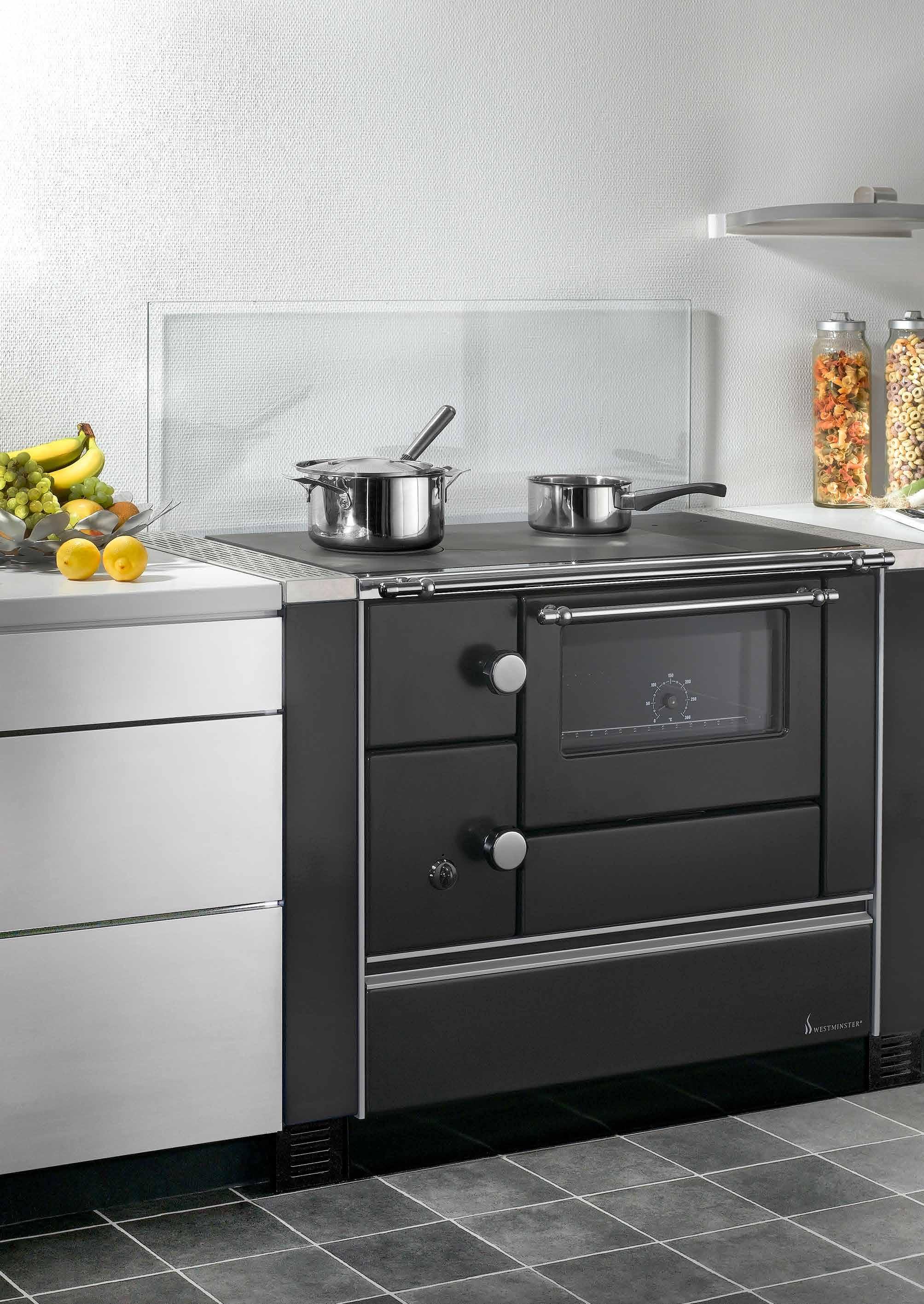 Lieferbar ist der Holzherd mit 70 oder 90 cm Breite in zahlreichen Farben. Mit und ohne Sichtfenster steht hier das Kochen im Zentrum: Mit lackierter Stahlplatte und Bratrohr mit Temperaturanzeige.