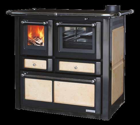 • Mit wärmespeichender Naturstein- oder Keramikverleidung