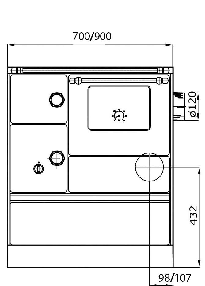 Abgasmassen-Strom NWL g/S 6,4 Abgasstutzen-Temperatur °C 186 Sicherheitsabstand (hinten, Seite/Feuerraum, Seite/Backofen, vorne) mm 250, 250, 250, 800 Heiztüröffnung (Breite, Höhe) mm 185, 195 Brennraum (Höhe, Breite, Tiefe) mm 230, 230, 430 Bratrohr (Breite, Höhe, Tiefe) mm 250, 360, 410 Abgasanschluss (Größe) Ø mm 130 Abgasanschluss (oben, hinten) mm 850, 702 Geräte-Abmessungen (Höhe, Breite, Tiefe) mm 850, 850 (920), 560 (620) Gewicht (Brutto, Netto) kg 169, 149 Energieeffizienzklasse A