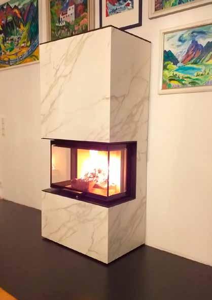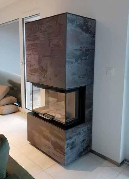 In einem einzigartigen - zum Patent angemeldeten - Produktionsprozess werden großformatige Sinterkeramik-Platten dreidimensional verformt. Das fertige Produkt besitzt weitherin alle einzigartigen Sinterkeramik-Eigenschaften und eignet sich somit hervorragend für den Einsatzbereich an der hochwertigen Feuerstätte.