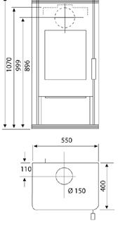 • Abgasanschluss oben/hinten: Ø 150 mm