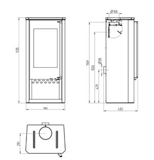Heiztüröffnung (Breite, Höhe) mm 260, 190 Brennraum (Höhe, Breite, Tiefe) mm 320, 350, 200
