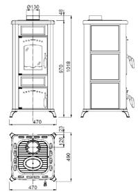 Sichtscheibe (Breite, Höhe) mm –Abgasanschluss (Größe) Ø mm 120
