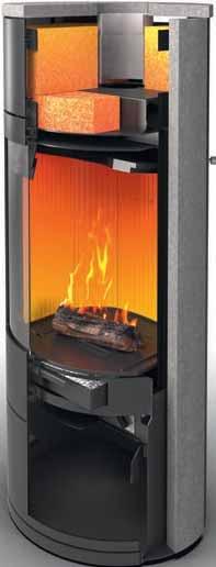 Spezielle Speichermasse, hoch verdichtet sorgt für eine gleichmäßigere Temperaturverteilung: Während des Heizbetriebes wird Wärmeenergie in der Speichermasse gespeichert. Nach Verlöschen des Feuers wird die gespeicherte Wärme nach und nach bis zu 12 Stunden lang wieder an den Aufstellungsraum abgegeben.