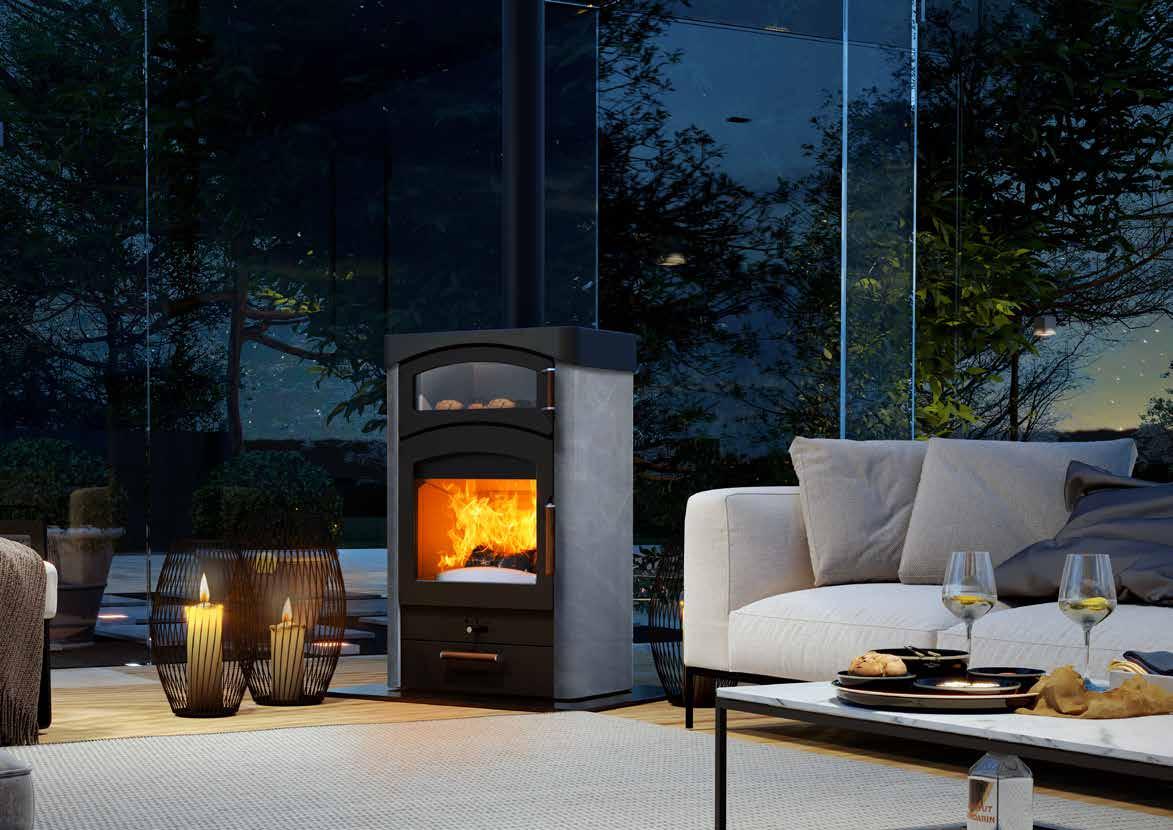 Mit 137kg Natursteinverkleidung erreichen wir hier ein ausgezeichnetes Designergebnis. Der innovativere Türmechanismus macht die Rechnung komplett.