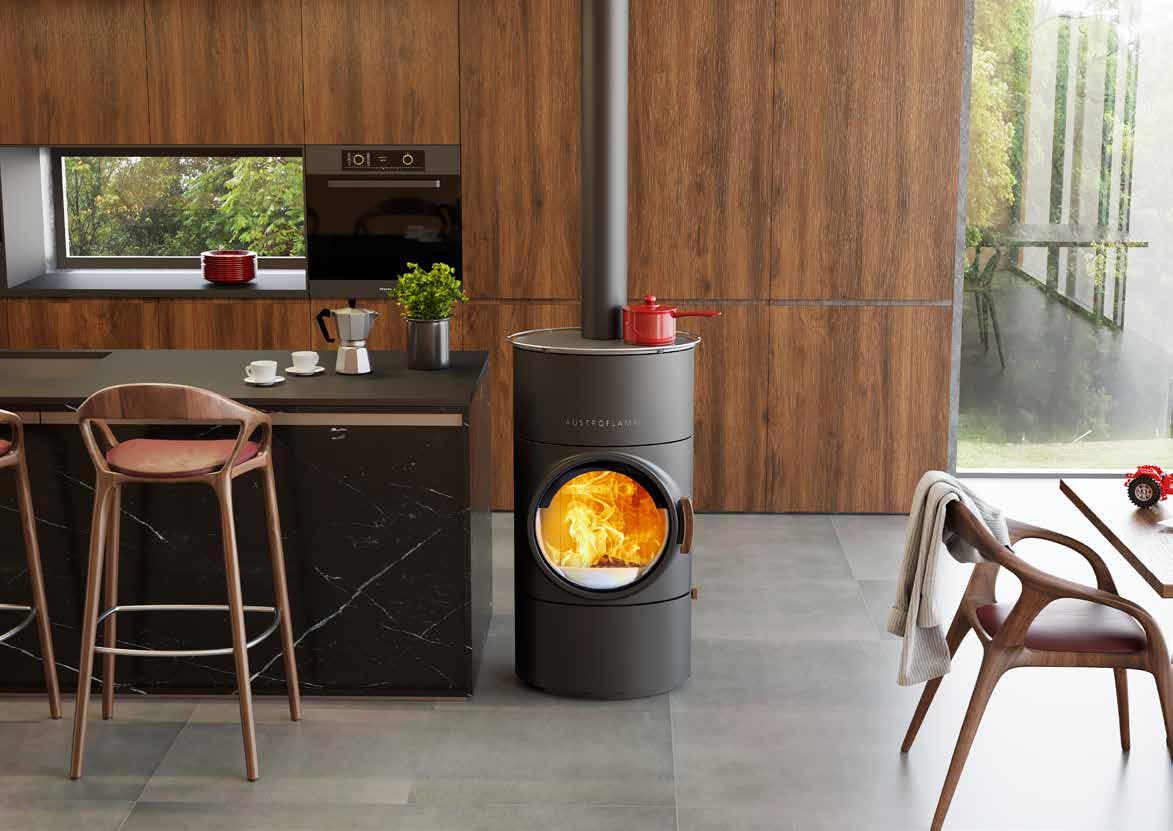 EIN ECHTER CLOU für alle, die mal etwas ganz Anderes suchen: runde Türe, ovaler Korpus und ein großer Türgriff aus elegantem Holz ergeben eine außergewöhnliche Kombination, die sicher nicht in jedem Wohnzimmer zu finden ist. Ebenso besonders, wenn auch nicht außergewöhnlich für Austroflamm-Modelle, ist das fantastische XtraWärmespeichersystem für bis zu 12 Stunden Speicherwärme.